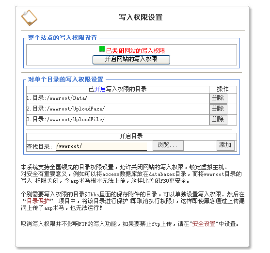您可以設(shè)置您的網(wǎng)站支持哪些網(wǎng)站腳本,如果您的網(wǎng)站只使用了asp,您可以設(shè)置為只開放asp權(quán)限。這樣黑客即使上傳了php的木馬到您的空間也不能運(yùn)行!最少的權(quán)限=最大的安全!