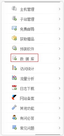 從虛擬主機遷移數(shù)據(jù)至VPS/云主機/獨立服務器的方法備份流程: 以下遷移流程需要您有一定的網(wǎng)站管理基礎,若對以下轉移流程不熟悉,可以提交維護工單,由我司收費為您處理。 一、備份 1、備份mysql數(shù)據(jù)庫 登錄我司網(wǎng)站,點擊“業(yè)務管理”——“虛擬主機管理”——“管理”,進入虛擬主機管理面板,點擊左側的數(shù)據(jù)庫,如圖: