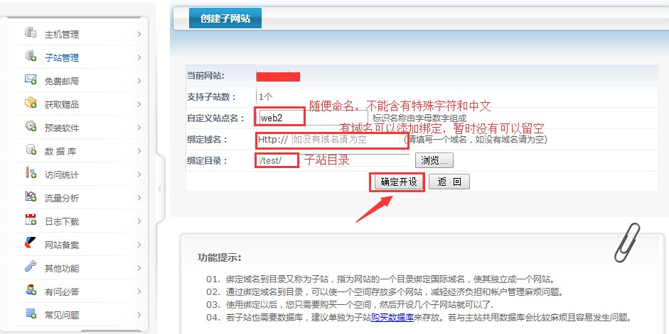填寫好子站信息,確認開設(shè)即可。