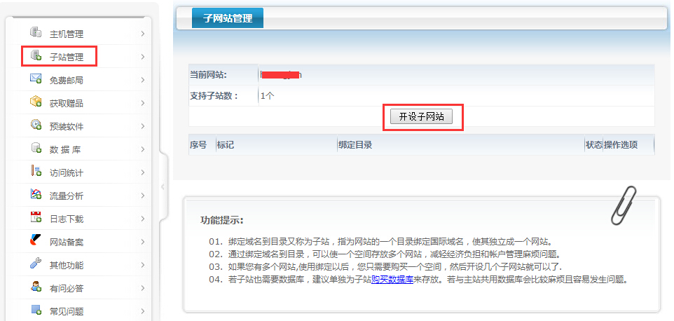 開設(shè)成功以后將文件上傳到子站目錄。 獨立控制面板開設(shè)位置: