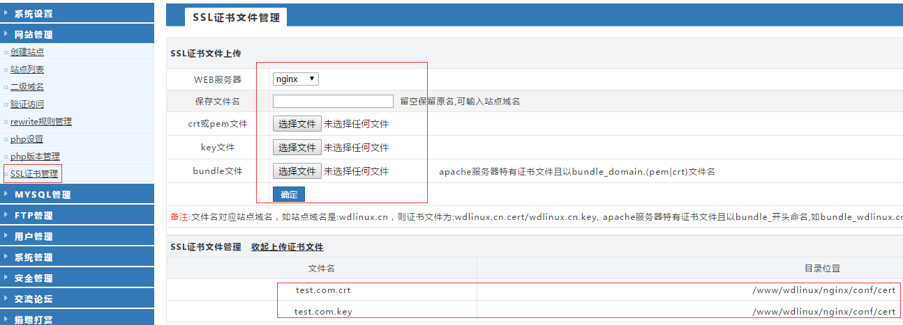 注意: 1、證書文件名必須和站點域名相同才能成功部署https(參考如附圖)