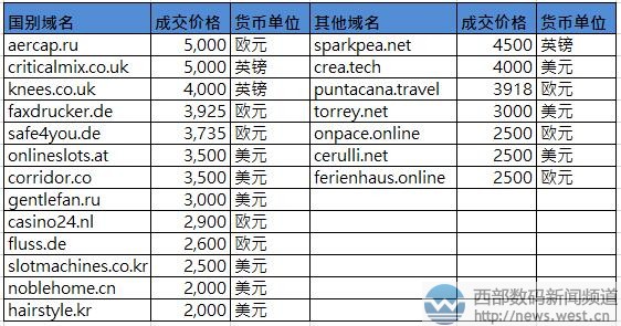 國(guó)別域名方面,本期表現(xiàn)平平,成交價(jià)最高的域名是俄羅斯國(guó)家域名aercap.ru,對(duì)應(yīng)有荷蘭愛(ài)爾開(kāi)普飛機(jī)租賃公司(AerCap Holdings N.V.),其官網(wǎng)域名為aercap.com。小編猜測(cè),沒(méi)準(zhǔn)就是AerCap公司收購(gòu)保護(hù)了域名aercap.ru。 其他域名方面,新頂級(jí)域名表現(xiàn)可圈可點(diǎn),本期共有4個(gè)新后綴上榜。其中,crea.tech以4000美元的價(jià)格成交,該域名對(duì)應(yīng)很多縮寫詞,比如加利福尼亞不動(dòng)產(chǎn)協(xié)會(huì)(California Real Estate Association),另外血肌酐也與之對(duì)應(yīng)。除此以外,puntacana.travel(地名:達(dá)加納)、onpace.online(步伐)、ferienhaus.online(大廈)等域名均超2500美元成交。 本文轉(zhuǎn)載自新聞資訊,原文鏈接:Sedo交易榜:“本地媒體”超12萬(wàn)元成交! 4個(gè)新頂級(jí)域名上榜