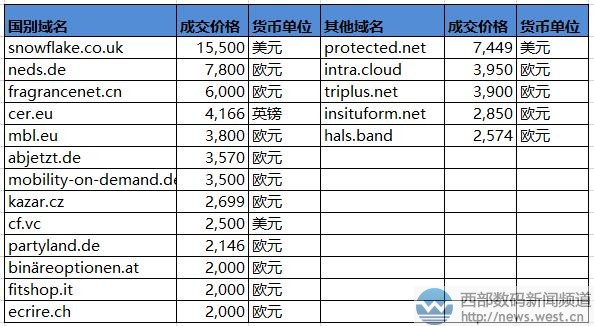 國別域名方面,英國域名snowflake.co.uk以15,500美元成交,約合人民幣10萬元。域名Snowflake.co.uk雖然字符較長,后綴又是長尾域名,但勝在含義通用。前綴snowflake是“雪花”的意思,在全球都是比較常用的詞,加上沒有特別的行業趨向性,所以應用空間廣泛,市場價值不錯。 其他域名方面,protected.net(保護)以7,449歐元結拍,約合人民幣5.7萬元。另外,兩個新頂級域名intra.cloud(內部云)和hals.band(柏林住房)分別以3950和2574歐元的成交價上榜。 本文轉載自新聞資訊,原文鏈接:“禮物”域名12萬元領銜!韓國最大比特幣交易所買走korbit.com?