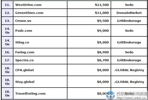 除此以外,兩個“全球”域名也榜上有名。其中,兩字母疊域名HH. Global以19,000美元結拍,代表有“海航、好貨、合伙、豪華、皇后”等諸多含義,這也是近期售價較高的新頂級域名。此外,與“京東”相對應的JD.global拍出16,000美元。