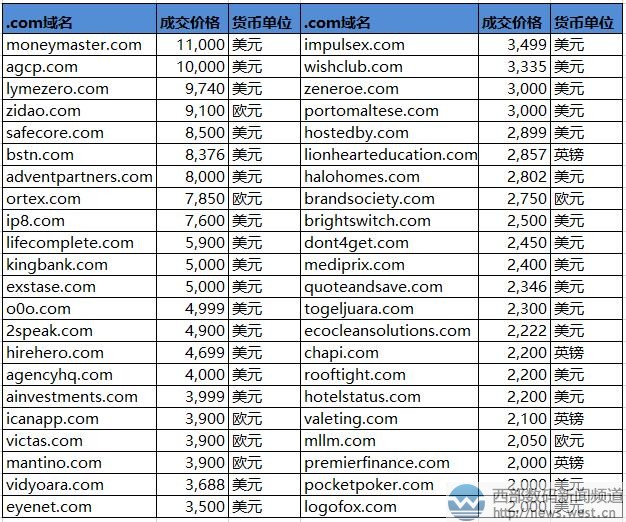 Sedo交易榜:意大利域名奪得冠軍!“比特幣”域名bitcoins.co拍出五位數(shù)!三五互聯(lián)(35.com)7月6日消息,最新一期的sedo交易榜出爐,本期上榜的域名共有61個(gè),其中賣價(jià)最貴的是意大利國(guó)別域名flix.it,成交價(jià)為22,000美元,約合人民幣15萬(wàn)元。