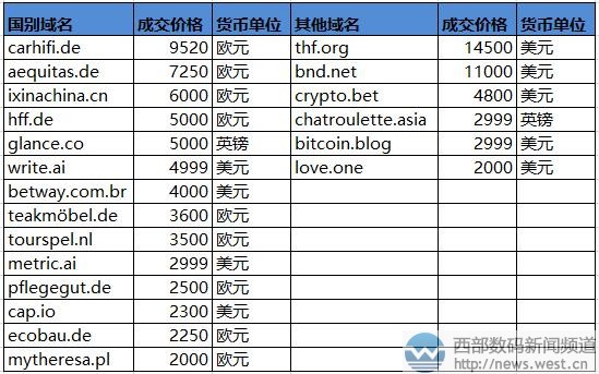 國別域名方面,本期多個德國域名成交。其中,價格最高的域名carhifi.de以9520歐元結拍,約合人民幣7.5萬元。主體“hifi” 常用來表示音響設備的“高保真度”,可作為車載音響品牌的官方域名。除此以外,域名aequitas.de以7250歐元結拍,hff.de以5000歐元結拍,另外teakmobel.de、ecobau.de等域名也榜上有名。 其他域名方面,三字母域名thf.org以14,500美元結拍,約合人民幣10萬元,代表有“提貨費、退貨費、通話費”等諸多含義,可以挖掘的空間較大。此外,新頂級域名crypto.bet以4800美元結拍,該域名有“加密貨幣打賭”之意;另外一枚“比特幣博客”域名bitcoin.blog以2999美元結拍,love.one以2000美元上榜。 本文轉載自新聞資訊,原文鏈接:語言學習平臺Mondly相關域名17萬元結拍!比特幣新頂級再上sedo榜
