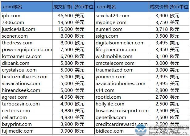 本期的.com域名中,五位數(shù)美元成交的域名只有5個。其中,排在第一的域名ipb.com早在7月底就曝出交易消息。該域名注冊于1995年9月,首字母“i”諧音“愛”,而字母“pb”對應(yīng)有“跑步、排版、泡吧、聘寶、陪伴”等含義。所以組合在一起,域名ipb.com可廣泛用于跑步軟件、婚戀交友、娛樂休閑、以及招聘等諸多行業(yè)。 排名第二的是以19,500美元成交的數(shù)字域名7306.com,約合人民幣13萬元。該域名注冊于2004年,雖然含有數(shù)字0,但字符簡短好記,建站不受限制,可用來搭建金融、游戲、門戶網(wǎng)站等。 緊隨其后的是一枚組合域名justice4all.com,成交價為15,000美元,約合人民幣10萬元。該域名中的數(shù)字4英文發(fā)音與單詞“for”相同,所以justice4all.com也就是“對所有人公正”的意思。適合搭建公益網(wǎng)站或者法律援助平臺。