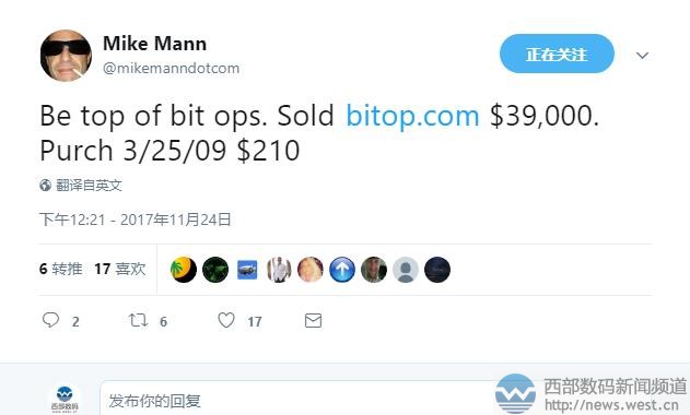 比特幣的風(fēng)大佬也要跟!Mike Mann超25萬(wàn)元出售域名bitop.com三五互聯(lián)(35.com)11月27日消息,比特幣的這把火已經(jīng)持續(xù)燒了很長(zhǎng)時(shí)間了,光是今年以來(lái),相關(guān)域名就跟著水漲船高,不少投資人因此獲利頗豐。當(dāng)然域名圈最會(huì)銷售域名的人也不例外,上周五Mike Mann就以39000美元出售了域名bitop.com,約合人民幣25.7萬(wàn)元。