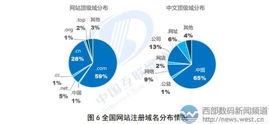報(bào)告顯示,截至2017年底,我國(guó)網(wǎng)站數(shù)量達(dá)到526.06萬(wàn)個(gè),網(wǎng)站主辦者達(dá)401.65萬(wàn)個(gè),使用域名709.69萬(wàn)個(gè),在所有網(wǎng)站使用的域名中,.com域名占比59%,.cn域名占比28%,.net域名占比5%,.top域名占比2%,.cc域名.org域名各占比1%。