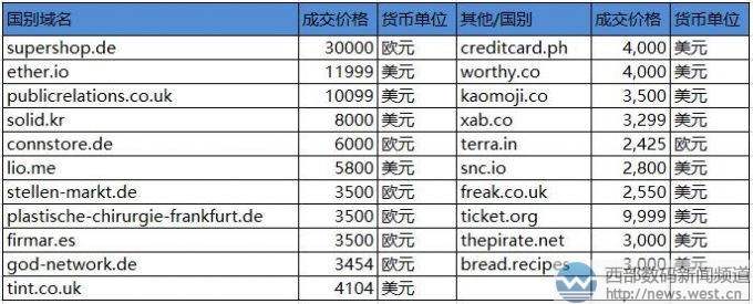 先來看國別域名,國別域名中除了.cn就屬.de域名zui為給力,sedo榜上也多次曝出.de域名高價成交的消息。本次以30,000歐元,折合人民幣超23萬元成交的supershop.de就表現(xiàn)不俗,該域名具有“超級商店”的意思,電商含義明顯,適合搭建在線商城。在新零售日益升溫的形勢下,好域名對于傳統(tǒng)零售商也具有重要意義。 域名ether.io成交價為11999美元,約合人民幣7.6萬元,該域名是英屬印度洋領(lǐng)地域名,具有“醚、蒼穹、太空”的含義,適合化學(xué)或太空等領(lǐng)域應(yīng)用。另外,有“公共關(guān)系”之意的域名publicrelations.co.uk以10099美元結(jié)拍,該域名雖然字符略長,但含義直觀清晰,適合搭建公共關(guān)系相關(guān)網(wǎng)站平臺。