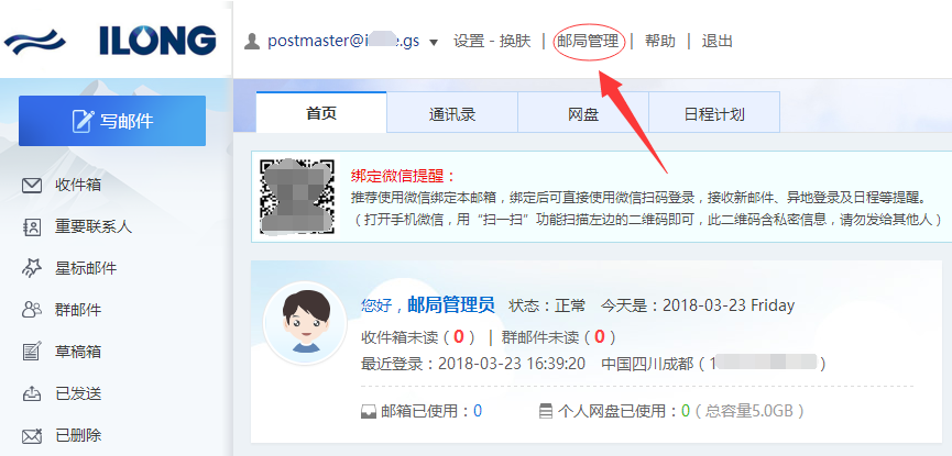 企業(yè)郵箱如何創(chuàng)建部門和用戶1、使用postmaster賬戶登錄云郵web管理平臺,點擊“郵局管理”。