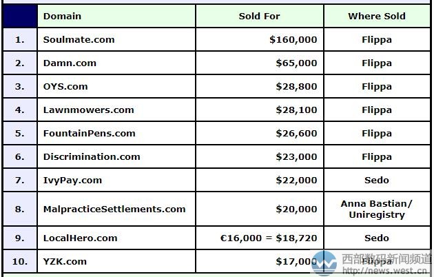 來源三五互聯(lián)新聞資訊,原文鏈接:英文域名“靈魂伴侶”以108萬元高居DN榜首!