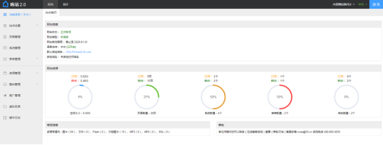 購(gòu)買刺猬響站后,可在刺猬響站管理后臺(tái)查看站點(diǎn)的網(wǎng)站信息,包含:網(wǎng)站狀態(tài)、網(wǎng)站類型、有效期、語(yǔ)言版本、系統(tǒng)域名、綁定域名、網(wǎng)站資源及使用情況