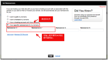 5、在彈出層的輸入框中填寫您的域名DNS服務(wù)器地址,點擊【OK】即可完成設(shè)置。