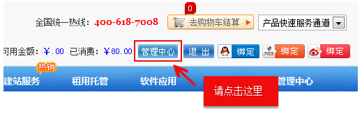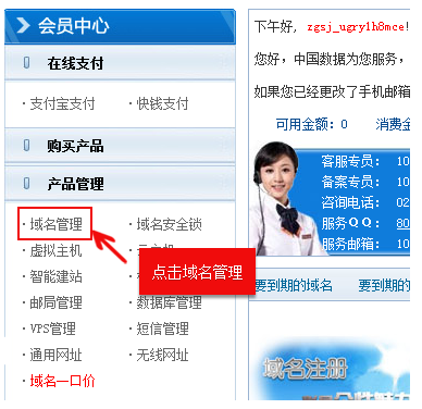 2.進(jìn)入管理中心,點擊左側(cè)導(dǎo)航欄-產(chǎn)品管理中的【域名管理】